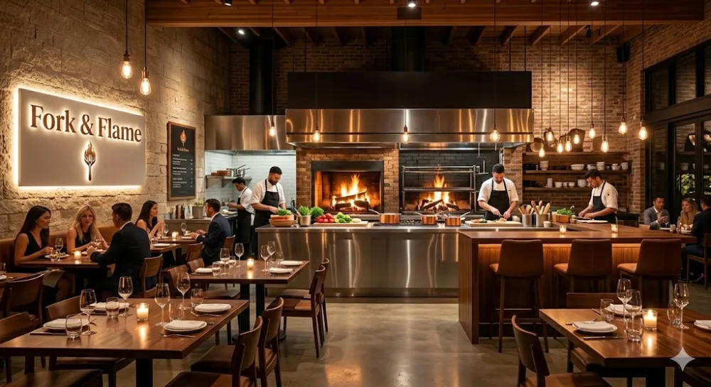 Fork & Flame is a modern restaurant built around the art of fire-cooked cuisine and fresh ingredients. Combining a stylish atmosphere with bold flavors, it offers grilled specialties, contemporary dishes, and a warm dining experience perfect for gatherings and memorable evenings.
